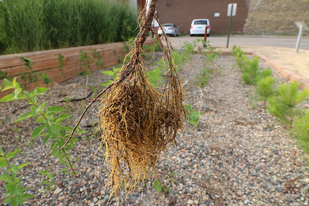 You might also want to think about your soils. A percolation test is a simple way to measure how well water soaks into your yard. If your percolation test demonstrates that water doesn’t soak in very well, you could amend your soils with compost or topsoil to improve infiltration. You can always take a soil sample and send it to the University of Minnesota’s lab, which will tell you the composition of your soil (clay, loam, sand, urban fill). In some cases, you may discover that you’ve got a bit more digging to do to fix those soils, but as long as you’re not going really large with your planting, it should be viable for a do-it-yourself fix.